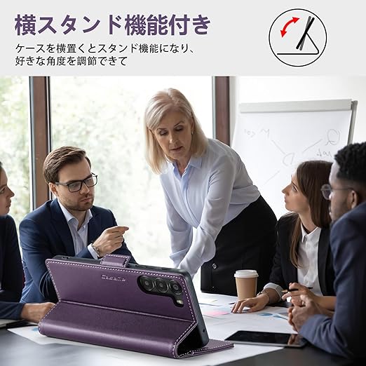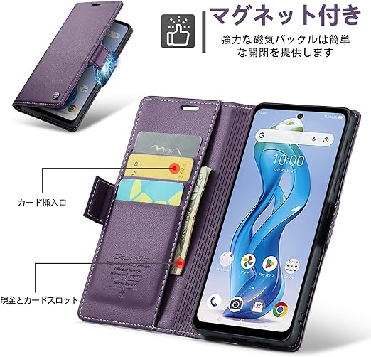 【上品なデザイン】外部のカバーは高品質なPUレザー素材で作られ、素材の表面に手触りは非常に良い、上品で洗練されたデザインです。中身は柔軟なTPU素材で作られて、スマートフォンの全面保護でき、脱着簡単です。【磁気バックル付き】カバーを閉じると勝手にマグネットが着くので手間がかかりません
