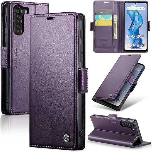 ReHowy ZTE Nubia S 5G 対応 ケース 手帳型 PUレザー 携帯便利 ヌビア S 5g 保護カバー 衝撃防止 擦り傷防止 全面保護 磁気バックル付き スタンド機能付き カード収納 コイン収納 実用性高 携帯カバー レトロ Nubia S 用 手帳型ケース パープル a