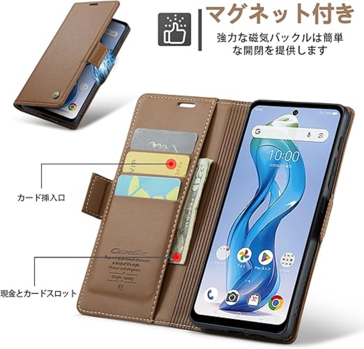 【上品なデザイン】外部のカバーは高品質なPUレザー素材で作られ、素材の表面に手触りは非常に良い、上品で洗練されたデザインです。中身は柔軟なTPU素材で作られて、スマートフォンの全面保護でき、脱着簡単です。【磁気バックル付き】カバーを閉じると勝手にマグネットが着くので手間がかかりません