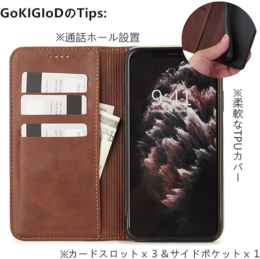 【素材】 表:レトロ感溢れる高品質の合成PUレザー、内:柔らかくて衝撃耐性高いTPUカバー(各機種対応の専門設計)。留め具なしので指への支障も無くなって、一見からするとシンプルなデザインで、汚れにくく落ち着いたレトロの材質を採用され、持ちやすく、使い勝手が良いのです。どんなシーンでも違和感なし、気楽に使えます。