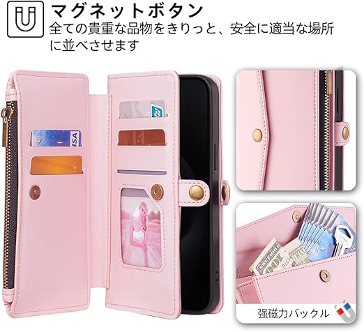 【ラグジュアリー感の手触りとデザイン】高品質なPUレザー素材を厳選しました。凹凸感のある 柔らかく 肌なじみのいい シュリンク PUレザー は、目に見える高級感と抜群な手触りが特徴です!柔軟性がありますので装着脱着ときも携帯本体に傷からしっかり保護できます。このスマホケースのデザインは、質感と使いやすさを追求しています。