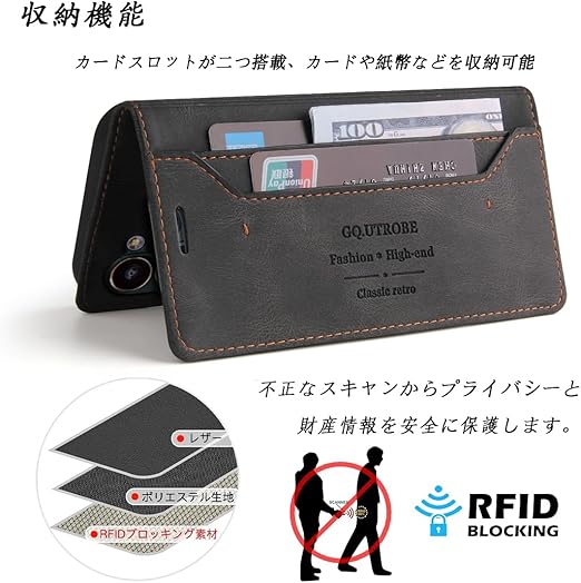 【高品質素材&全面保護】丁寧な手仕事で、細部までこだわりの手帳型ケースです。耐熱性と柔軟性を誇るPUレザーから作られていて、滑りにくく、指紋、油分などもつきにくく、手帳型ならではの全面保護機能でディスプレイはもちろん、背面もしっかりガードし