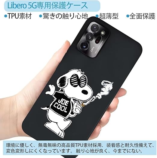 ZKVK Libero 5Gケース スヌーピー 保護カバー りべろ5gスマホケース 韓国 TPU スリム 軽量 衝撃吸収 ワイヤレス充電対応 ケース (4, Libero 5G II) a