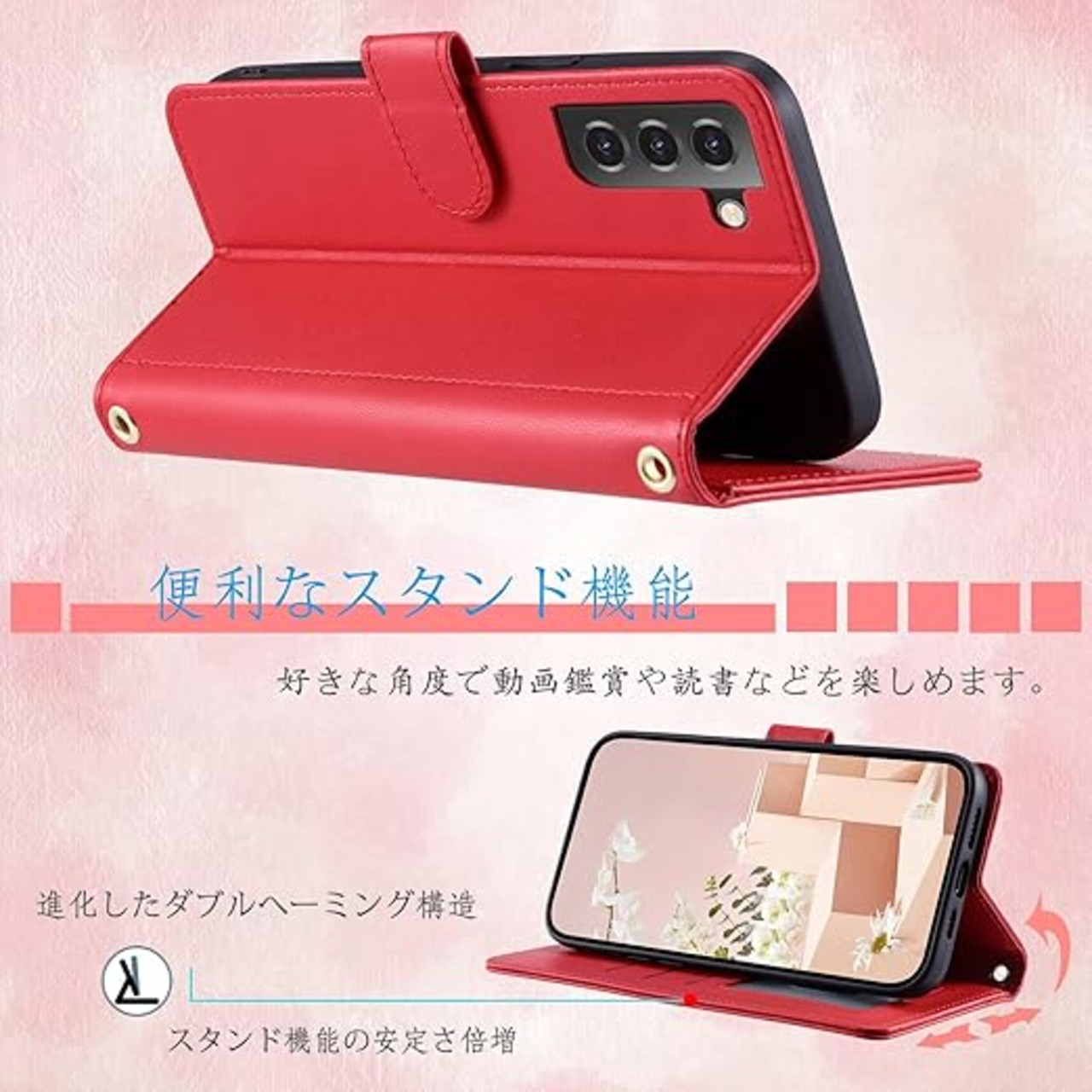 UnivoColors Galaxy S21 Plus 5G(SC-02B/SCG10)キルティングレザー調 手帳型ケース エレガント 高質PU マグネット開閉式 カード収納機能 スタンド機能 液晶全面保護 レンズ保護 ストラップ付属(レッド) a
