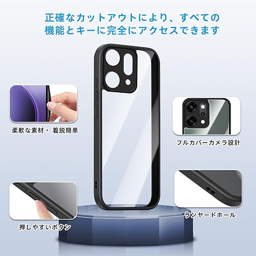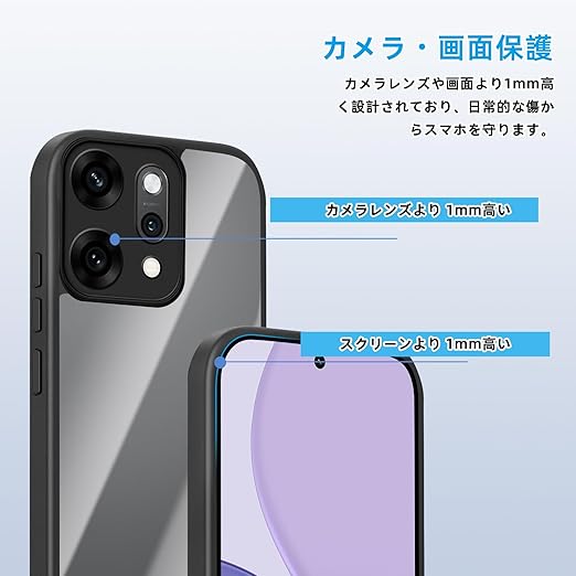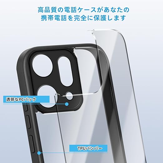 [SinRenn] OPPO Reno14 5G (CPH2737) ケース クリア 360°全面保護 薄型 レンズ保護 スマホケース 耐久性 透明PC背面+ソリッドカラー TPUフレーム 耐衝撃 携帯カバー 黄変防止 擦り傷防止 米軍MIL規格 落下防止 携帯ケース OPPO Reno14 5G スマホカバー (ブラック) a