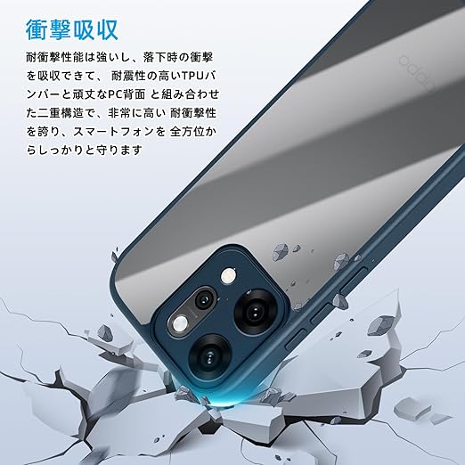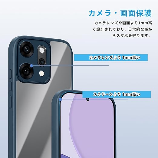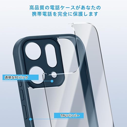 [SinRenn] OPPO Reno14 5G (CPH2737) ケース クリア 360°全面保護 薄型 レンズ保護 スマホケース 耐久性 透明PC背面+ソリッドカラー TPUフレーム 耐衝撃 携帯カバー 黄変防止 擦り傷防止 米軍MIL規格 落下防止 携帯ケース OPPO Reno14 5G スマホカバー (ブルー) a