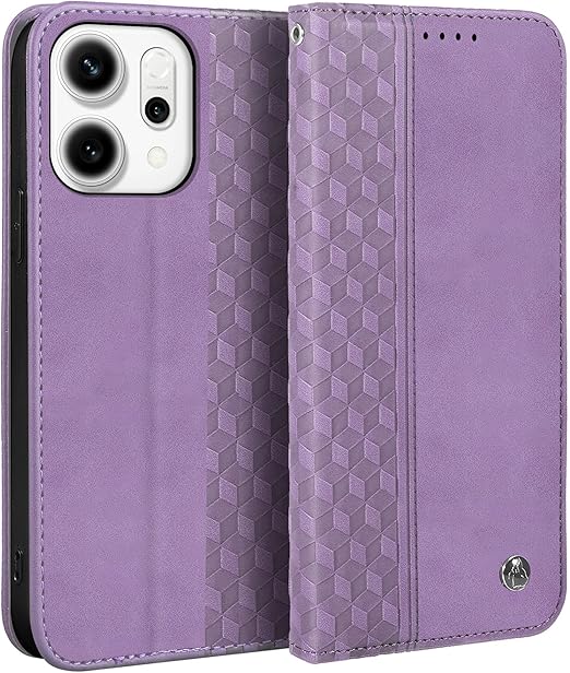 Gedurya OPPO Reno14 5G ケース 手帳型 ひし形柄 オッポ レノ14 5g ケース 手帳型 マグネット式 スタンド機能 Reno 14 携帯カバー カード収納 財布型 OPPO Reno14 5G スマホケース 軽量 薄型 オッポreno14 5g ケースカバー 全面保護 耐衝撃 6.6インチ対応 - パープル a