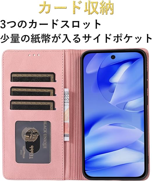 【カード収納】このケースは収納力に優れている、名刺、クレジットカード、交通カード用の3つのカードスロットを装備、少