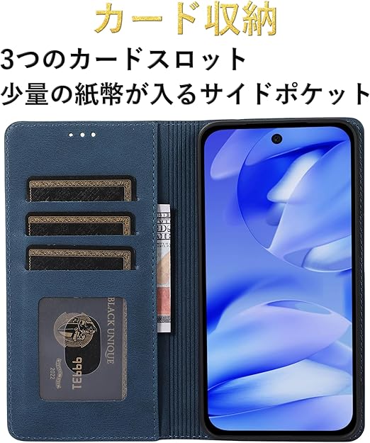 【カード収納】このケースは収納力に優れている、名刺、クレジットカード、交通カード用の3つのカードスロットを装備、少