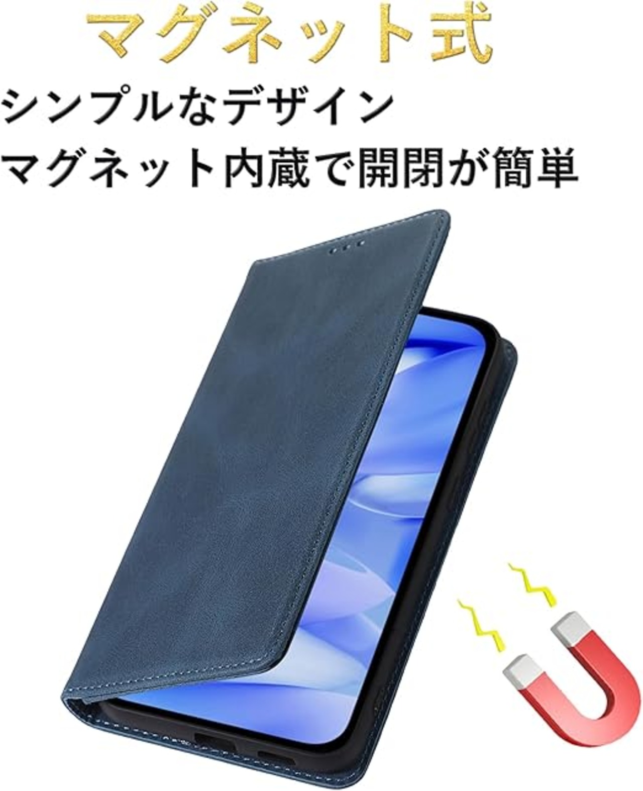 【マグネット式】このケースはマグネットを内蔵しており、面倒なマグネットクラスプを使用せず、開閉がとても簡単です、ミニマルデザイン、ファッションセンスを高めます。