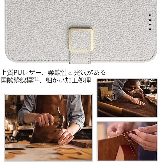 【耐衝撃性】耐熱性と柔軟性を誇るPUレザーから作られていて、滑りにくく、指紋、油分などもつきにくく、手帳型