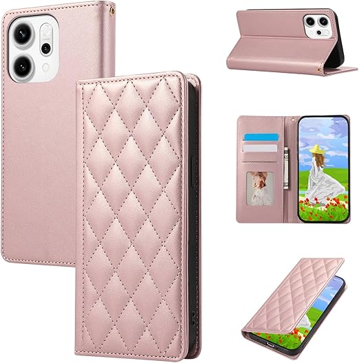 Gedurya OPPO Reno14 5G ケース 手帳型 オッポreno14 5g ケース 財布型 カード収納 RFIDブロッキング オッポ レノ14 5g 手帳型ケース マグネット式 ダイヤモンド グリッド シェイプ OPPO Reno 14 5G スマホケース スタンド機能 Reno14 携帯カバー - ピンク a