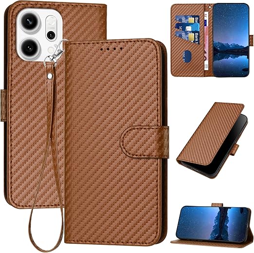 Gedurya OPPO Reno14 5G ケース 手帳型 オッポ レノ14 5g スマホケース 炭素繊維ブレイドスタイル 肌触り良い オッポreno14 5g ケース 携帯カバー マグネット開閉式 スタンド機能 軽量 薄型 OPPO Reno14 5G 手帳型ケース 指紋防止 人気 上質 オッポReno 14 携帯ケース 全面保護 財布型 便利 - ブラウン a