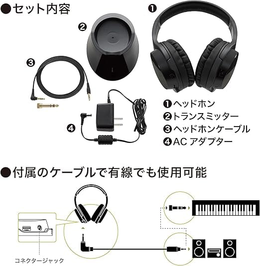 オーディオテクニカ ATH-EP1000IR 楽器用ワイヤレスヘッドホン 電子ピアノ・ギター・ベース・ドラム練習/動画配信 有線無線兼用 ワイヤレス 【国内正規品】ブラック a