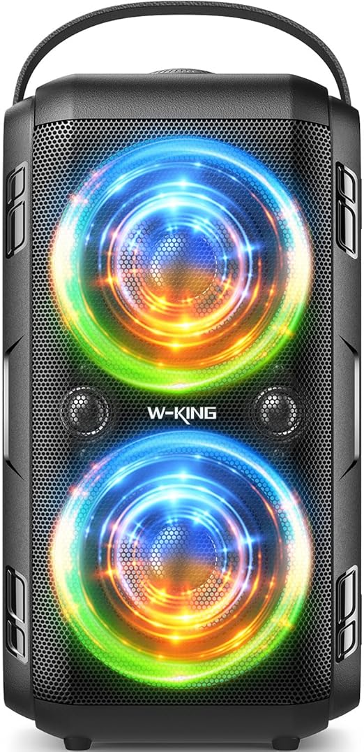 W-KING 80W Bluetoothスピーカーラウド 、スーパー重低音、巨大な105dBサウンドポータブルパーティースピーカー、混合色LEDライト、24H Playtime、Bluetooth 5.0、USB再生、TFカード、非防水 a