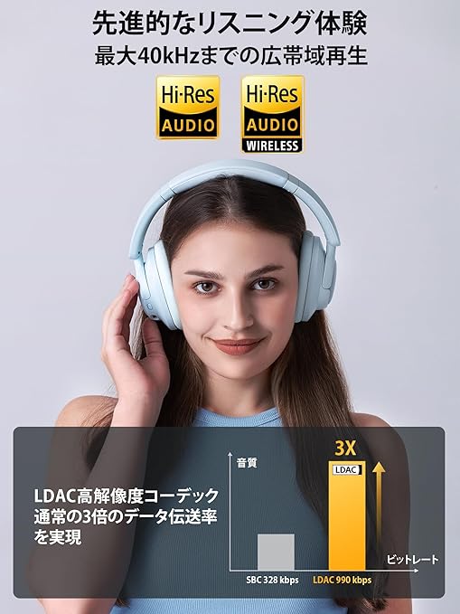 【2つのHi-Res認証】「Hi-Res Audio認証」&「Hi-Res Audio Wireless認証」を取得し、高解像度の音質を提供し、没入感のあるリスニング体験を実現します。LDACに対応しており、AACやSBCコーデックと比べて最大3倍のデータを伝送します。