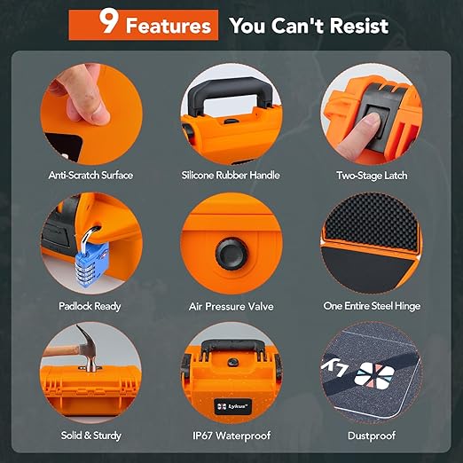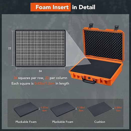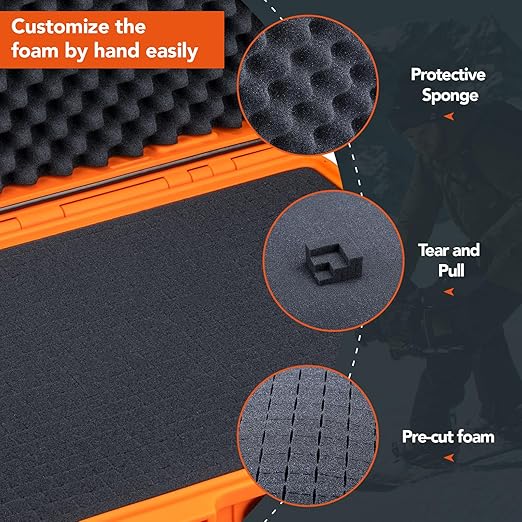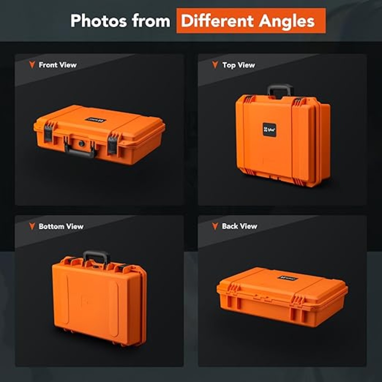 Lykus HC-4410 防水ハードケース(オレンジ) 格子状カットスポンジが内蔵 内寸:44x29x12cm ラップトップ、ピストル、小型ドローン、ビデオカメラ、アクションカメラなどに適用 a