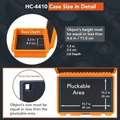 外部寸法: 47.3x34.8x12.8 cm | 内部寸法(空箱、スポンジ無): 44x29x12 cm | 利用可能寸法(スポンジ付): 40x26x11.5 cm