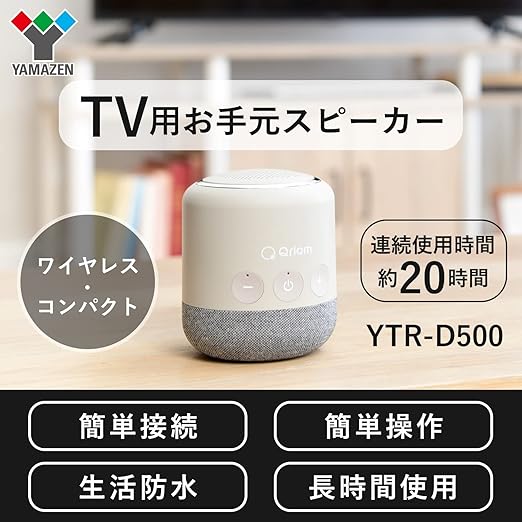 [山善] スピーカー テレビ用 手元スピーカー ワイヤレス 伝送距離30m 防水 IPX4 小型 連続使用約20時間 簡単接続 簡単操作 ベージュ YTR-D500(BE) a