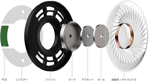 薄型ハウジングで厚みのある重低音が聴けるオンイヤー専用チューニングのΦ40㎜ SOLID BASSドライバー
