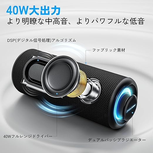 【40W大音量・Hi-Fi高音質】:米国Amazonで年間30万個以上が売れた実績を持つ第2世代スピーカーが日本で登場!40Wフルレンジドライバーと低音増強用にデュアルパッシブラジエーターが搭載されており、高い音圧と力強い低音をお楽しみいただけます。DSP(デジタル信号処理)アルゴリズムに加え、ノイズを低減し、クリアでパワフルな高音質サウンドを実現します。ステレオペアリング機能で2つのスピーカーをペアリングして、広い会場で迫力のあるサウンドを楽しみたい時に活躍します。