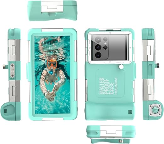 潜水用ケース iphone 水中撮影 ケース 防水ケース スマホ用 水中撮影・写真 IPX8標準防水レベル水深さ15mまで潜水 水泳 防水ポーチ お風呂 海水浴 夏フェス 温泉 お釣り 排気機能 ストラップ付き (薄緑+白) a