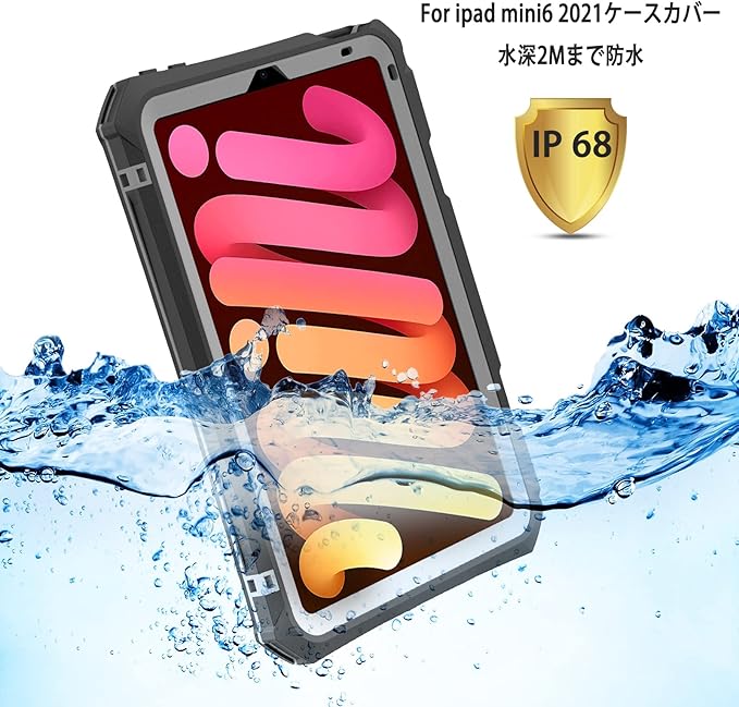 ✿【超強防水力】Ipad mini6防水ケースはIP68の最高防水等級を取得しております。水の浸入を防ぐので、水場でも大活躍です、防水だけでなく、小さな塵や雪にもしっかり保護できます。