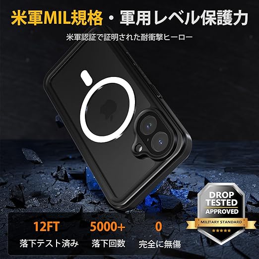 【米軍基準·全面保護】米軍「MIL-STD-810G」落下試験に合格したタフさ!それ以上、ポケットから取り出すときにうっかり落ちたり、歩きスマホ中にうっかり人