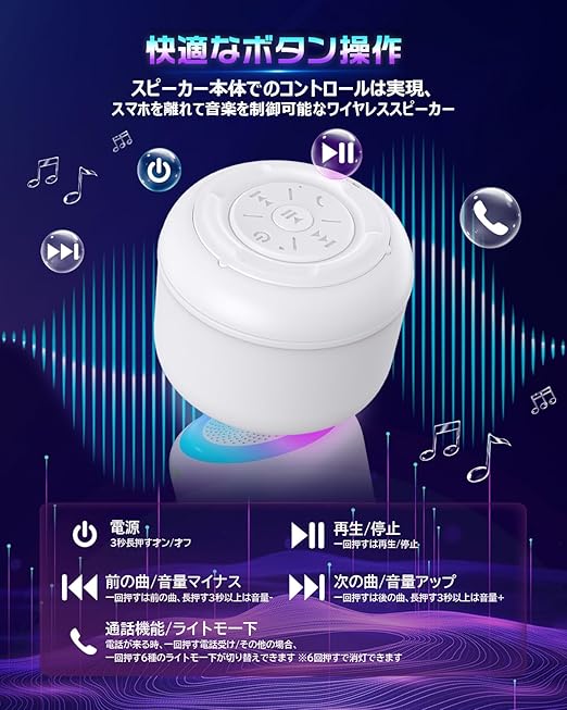 Bluetooth スピーカー【2025光るスピーカー&RGBライト】ブルートゥーススピーカー 防水スピーカー 小型 ワイヤレススピーカー お風呂 通話マイク ミニ ポータブルスピーカー スマホ 車/キャンプ/屋外 Android/iPhone対応 a