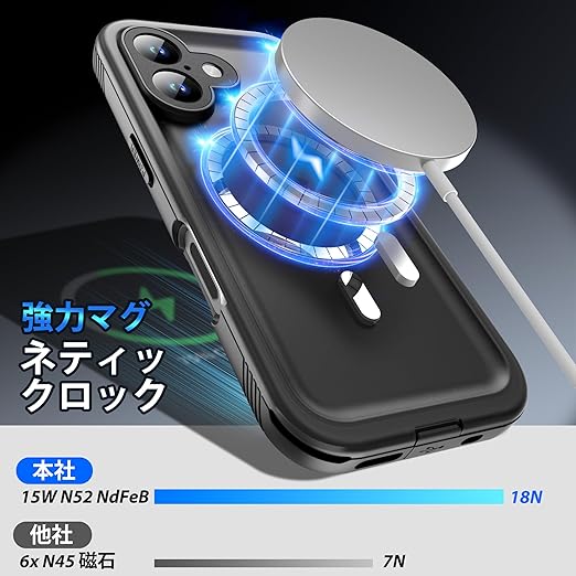 SPORTLINK iPhone 16 用 防水ケース iPhone 16 MagSafe 用 ケース完全防水 IP68防水等級 マグネット搭載 MagSafe対応 防雪 防塵 耐衝撃 360°全面保護 QI充電 フェイスID 認証対応 ワイヤレス充電 フェイスID 認証対応 カメラ調整ボタン 高透光性 レンズ保護 操作便利 超薄型 ストラップ付き 雨の日 お風呂 6.1インチ 適用 (ブラック) a