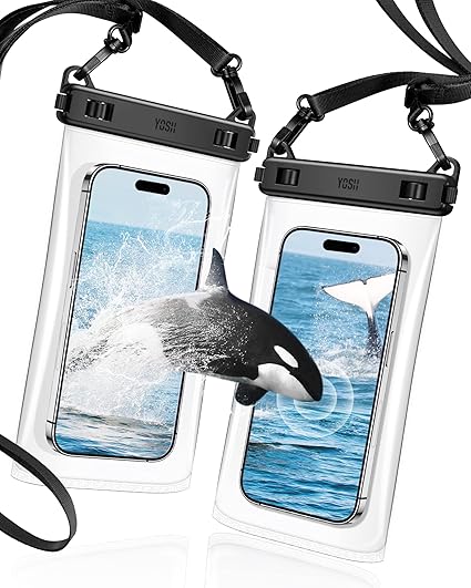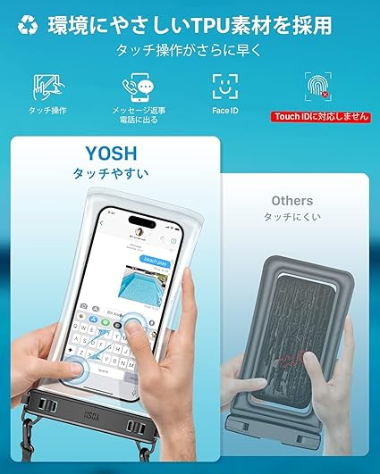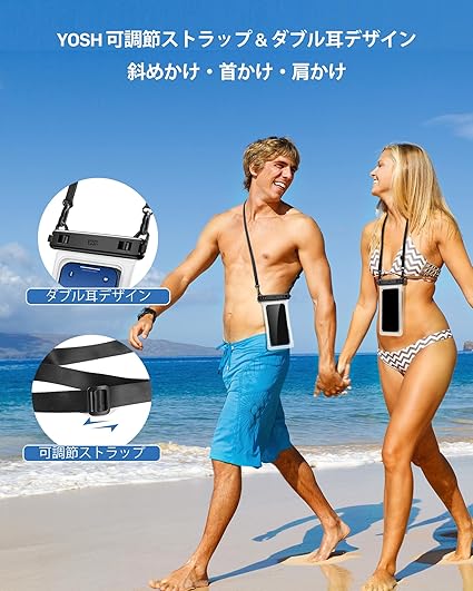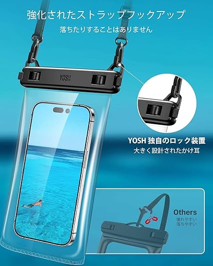 YOSH 2枚セット スマホ防水ケース 【ソフトなTPU材質・タッチ操作性改良】斜めかけ ダブルフック IPX8 防水スマホケース ネックストラップ調節可能 7.5インチ対応 シュノーケリング スイミング 海 プール 釣り 雨 潜水 水泳 雪 お風呂 温泉適用 iPhone/AQUOS/ARROWS/Pixel/Xperia/Galaxyに対応 透明TPU a