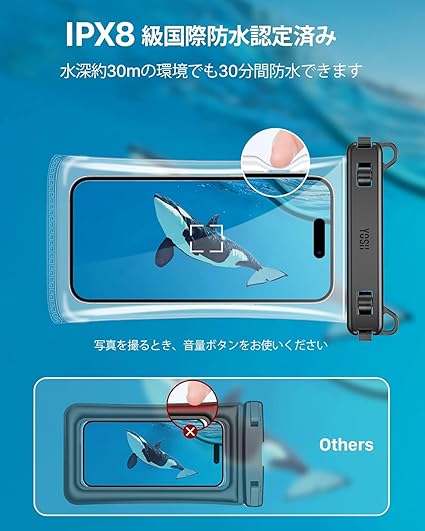 高品質TPU素材・究極のタッチ感覚を実現:航空グレードTPUの驚異的な柔らかさと高密着性が、画面との隙間を最小化。 指先の動きを忠実に伝える薄型設計により、裸機同様のタッチ感度を実現。さらに一体成型技術により物理サイドボタン部が押しやすく、水中撮影時でも軽い力でカチッと確実に作動します。高い透明性・耐傷性を維持しつつ、過酷なアウトドアシーンでもストレスフリーな操作を保証する防水ケースの決定版です。
