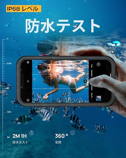 【IP68防水&多保護】防水国際保護等級IP68認定を獲得水没しても内部への水の侵入を完全にガードできます。雨や、雪、泥や砂などから保護できます!*****ご注意:ご使用前に必ずケースの内側に携帯電話ではなく紙片を入れて防水性をテストしてください。 最大水深2メートルで、iPhone 16eを30分間保護します。