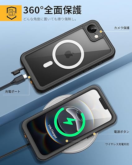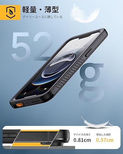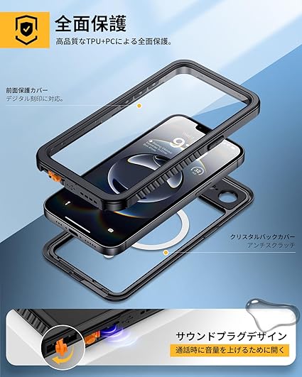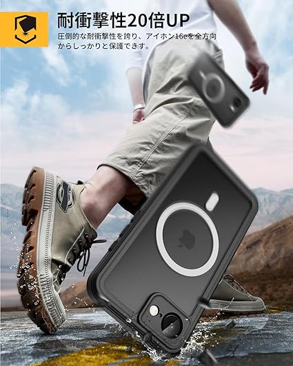 【強防衝撃力・360°保護】軍用MIL規格810G−516防振材料が採用されていますので、衝撃にとても強いです。iPhone 16防水ケースの嵌め込み式前カバーと透明バックカバーの組み
