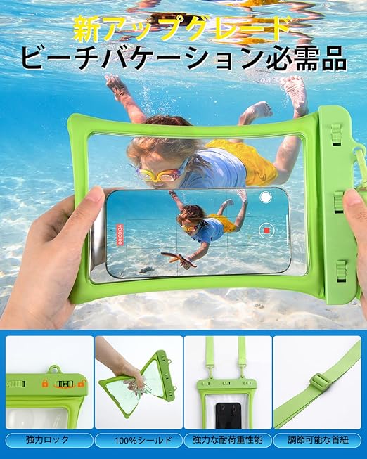 水中タッチ対応:高品質な柔らかい TPU 素材を採用しており、水中でもカメラやタッチスクリーンをスムーズに操作できます。ポーチから携帯を取り出さずに、簡単に水中撮影が可能です。
