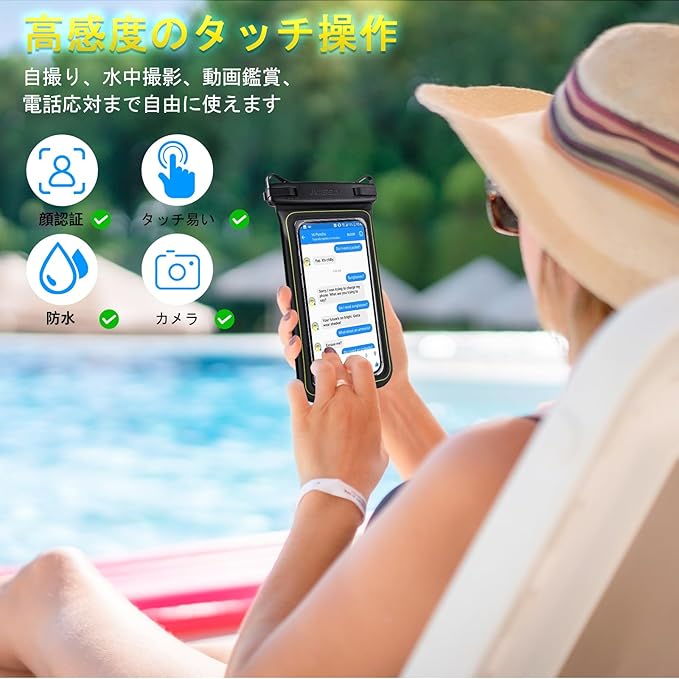 「2枚セット・水に浮く」スマホ 防水ケース LILIYYA:IPX8 浮く プール スマホ 海 スマホケース 完全防水 すまほ ぼうすい バッグ カバー ポーチ 水中 撮影 顔認証 通話 アイホン 携帯ケース 首掛け 斜め掛け 海水浴 水泳 潜水 iPhone 16 15 14 plus pro promax se Pixel Xperia に対応 7インチ 黒 a