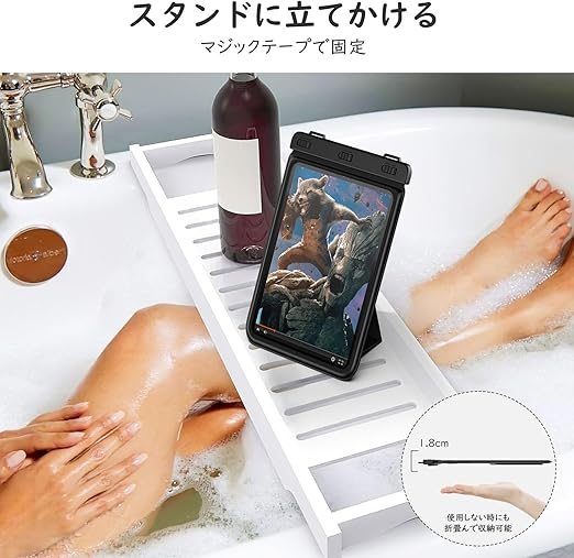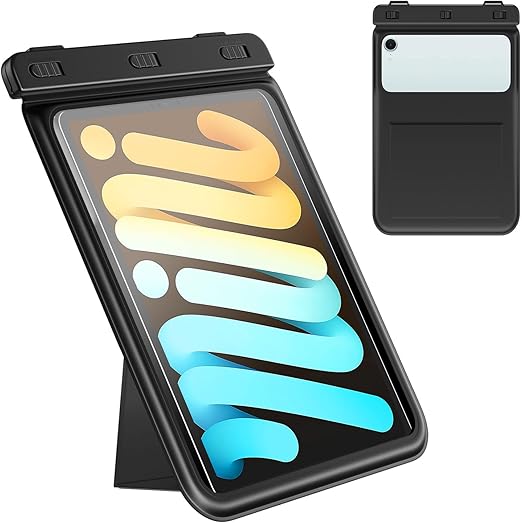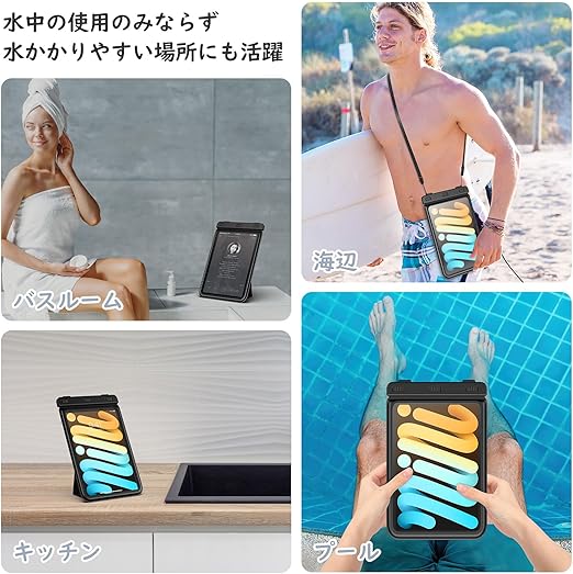 MoKo 防水ケース お風呂 タブレット用防水ケース スタンド仕様 8.5インチまで適用 透明防水カバー 首掛けバンド付き 浴室 お風呂 プール 水泳 砂浜 海水浴 iPadMini6/5/Fire7&KindlePaperwhite2021/2018/FireHD8/8Plusなどに対応 Black a