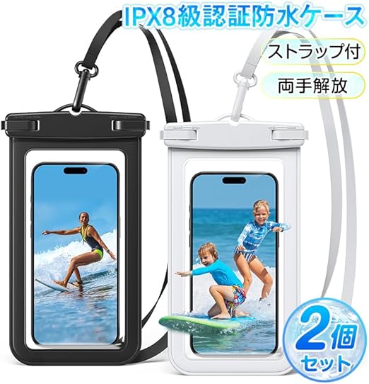 【2枚セット 完全防水】スマホ 防水ケース IPX8認定 海 プール 温泉 カバー 携帯 ドライバッグ 水中撮影 顔認証 首かけ ストラップ付き 密封 保護 雪山 ビーチ 入浴 水泳 潜水 サーフィン 登山 野外ライブ 釣り スキー スノボ iPhone 16/15/14/13/12/11 X XR XS 8 7 Android/Xperia/Galaxy/に対応 透明 4-7インチ機種に対応 a