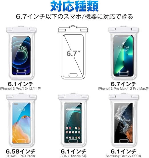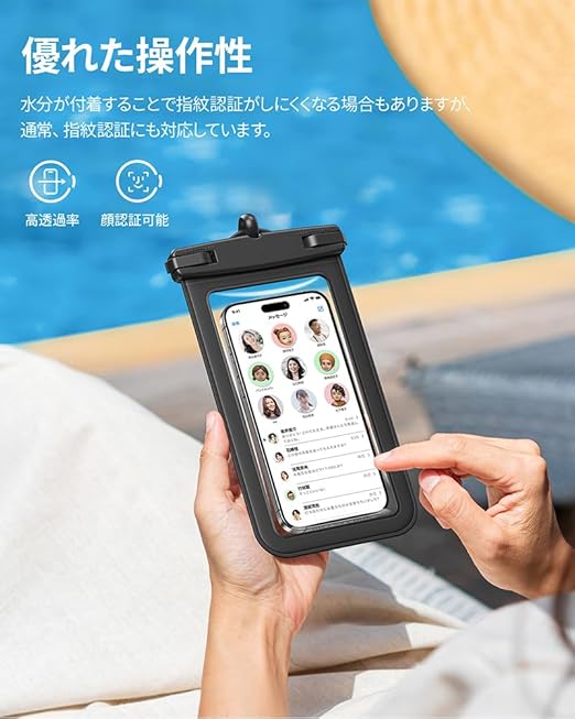 【多機能&最大の7.0インチ対応】水泳、潜水、海辺での撮影、お風呂、スキー、雪遊び、温泉で音楽や動画を楽しみたい時、野外ライブ、釣りなど様々なアウトドアとレジャーの場合に役立ちます。スマホ防水ケースに入れても、鮮明な写真撮影、スムーズなタッチ操作、通話、顔認証が可能になります。携帯を入れるだけでなく、カギ、カード、現金なども収納できますので、貴重品管理にもご利用できます。iPhone/Galaxy/Xperia/Aquos/ZenFone/HUAWEI/Android等(7.0インチ以下)のスマ