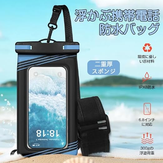 【2025年のNEWスタイル】スマホ 防水ケース IPX8完全防水 水中タッチ【浮く設計?多様な装着方法?指紋認証?Face ID認証】お風呂/海/プール/温泉 6.9インチ以下全機種対応(ブラックブルー) a