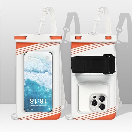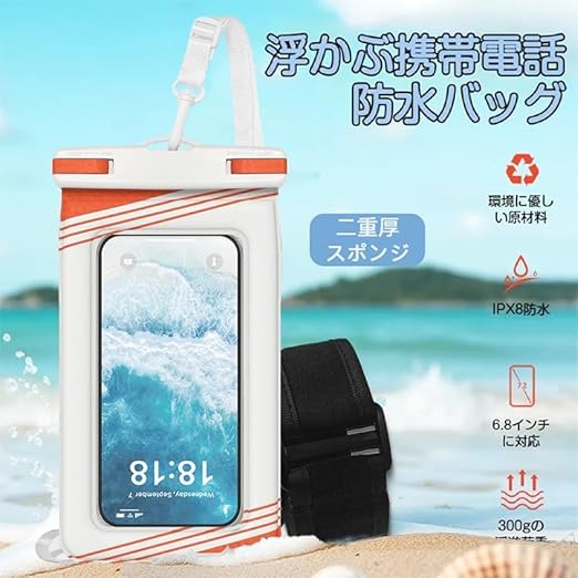 【2025年のNEWスタイル】スマホ 防水ケース IPX8完全防水 水中タッチ【浮く設計?多様な装着方法?指紋認証?Face ID認証】お風呂/海/プール/温泉 6.9インチ以下全機種対応(ホワイトオレンジ) a