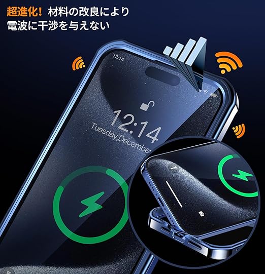 【多機能スタンド・マグセーフ対応】当店のiPhone 15 Pro Max ケースは、スタンド、CDリング、マグセーフ充電の3つを一体化しています。0-120°まで自由に調節でき、スタンドを収納すると完全に隠れます。マグセーフリングには堅牢な航空用アルミニウム合金ベアリングを採用し、リングの部分的な緩みを効果的に解決しました。このアイホン15 Pro Max ケースは内蔵の38個のN52永久磁石がマグセーフをしっかりと固定し、安全で迅速なワイヤレス充電を実現します