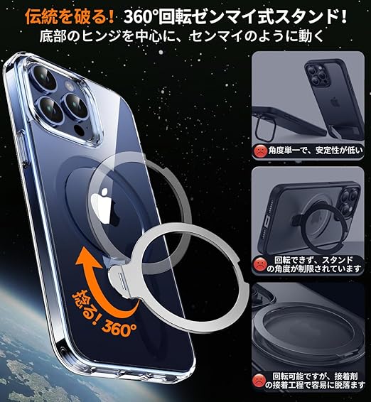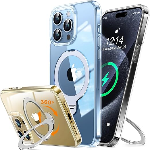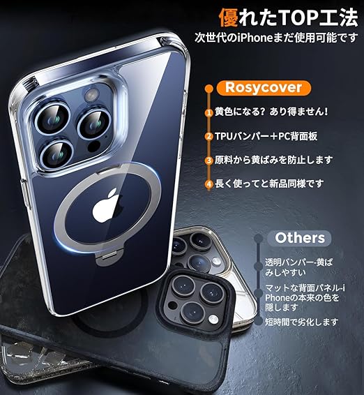 【極限透明感!360°回転スタンド】Rosycover iPhone 13 Pro 用 ケース クリア Magsafe 対応 [定点回転スタンド・超絶安定性][極透明・美しさを還元]ストラップホール付きマグセーフ ワイヤレス充電対応 アイホン13プロ 米軍MIL規格取得・耐衝撃ケースマホケース13 Proクリア人気 6.1インチ(クリア) a