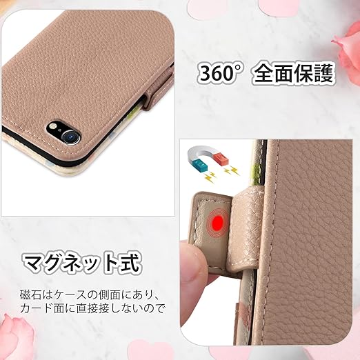 【上質素材】iPhone SE 手帳型ケース は高品質のPC素材とTPUで作られています。携帯ケースは感触が快適で、柔らかすぎず硬すぎず、しかも靭性と耐摩耗性に優れており、携帯電話が誤って落下しても、衝撃力を効果的に減少させ、携帯電話を損傷から保護することが