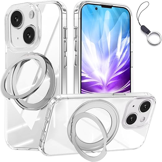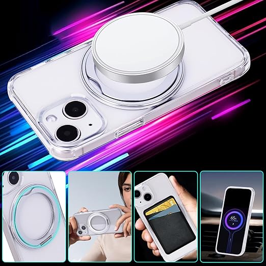 【360°回転スタンド】iPhone 13 Mini ケースMagSafe対応 アイフォン 13ミニ ケース マグネット搭載 スタンド機能360°回転可能【横縦両立/角度自由調整】 カバー 純正 薄型 クリア 耐衝撃 落下防止 車載ホルダー対応 ワイヤレス充電 全面保護 (あいほん13 Miniクリア) a