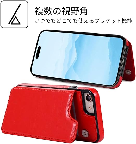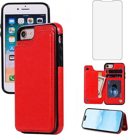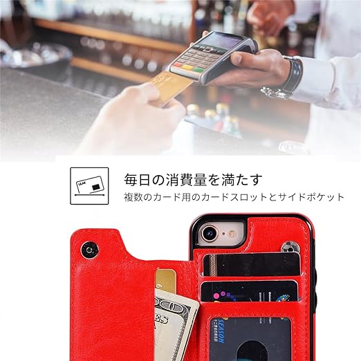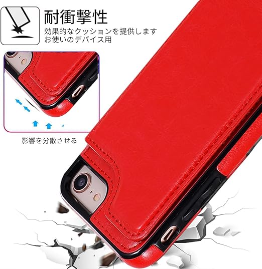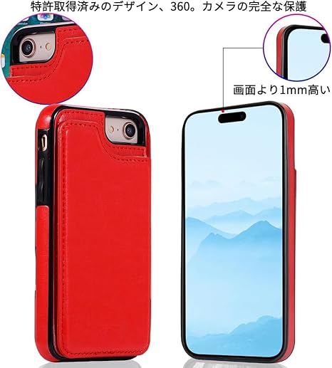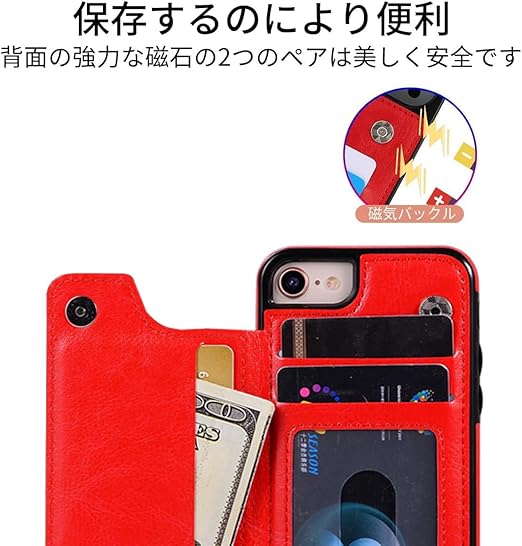 NKECXKJ iPhone SE 第2世代 第3世代 iPhone SE2 用ケース,iPhone7 iPhone8 iPhonese iPhonese2 携帯ケース カバー Case 人気 PUレザー 財布型カードホルター付き収納 スタンド機能耐衝撃 アップルアイフォン あいふぇいす 8 7 7S 8S 4.7 インチ(レッド) a