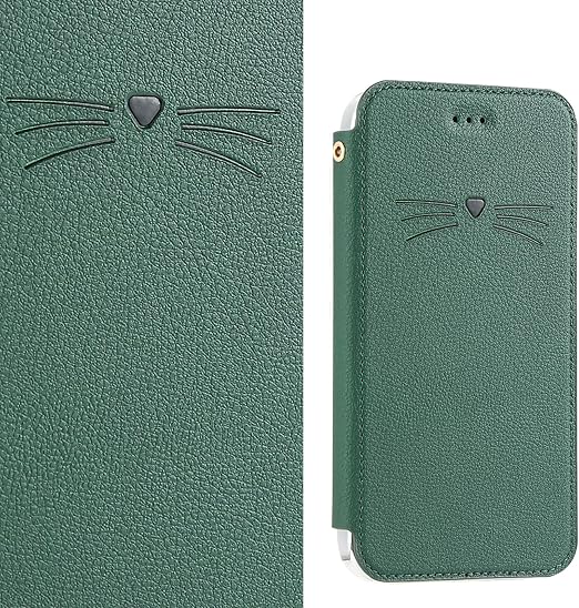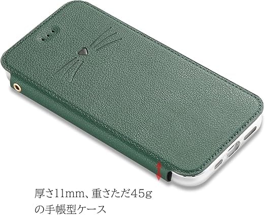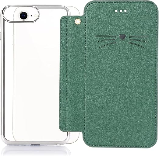 アイフォン se2 / se3 スマホケース 手帳型 背面クリア 薄型 マグネット無し iPhone SE 第3世代 / SE 第2世代 薄いケース 手帳型 ベルトなし かわいい型押しの猫 男女対応 ACkaban 手帳型 iPhoneSE2 iPhoneSE3 携帯ケース 手帳タイプ クリアケース ストラップホール カードポケット ワイヤレス充電対応 グリーン a