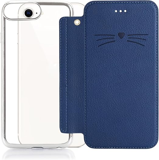 iPhone se ケース 2世代 / 3世代 手帳タイプ 背面クリア 型押しの猫柄 シンプル スッキリ アイフォン se 第3世代 スマホカバー 手帳型 薄型 ストラップ ホール スリム Qiワイヤレス対応 ACkaban アイフォン SE 第2世代 カバー 手帳 薄いケース マグネット無し ベルトなし 使いやすい おしゃれ iPhone 8 iPhone SE2 SE3 手帳型 スマホケース カードポケット付き iPhoneマック見え 男性 女性対応 カップル 素敵 ダークブルー a