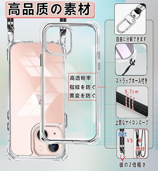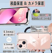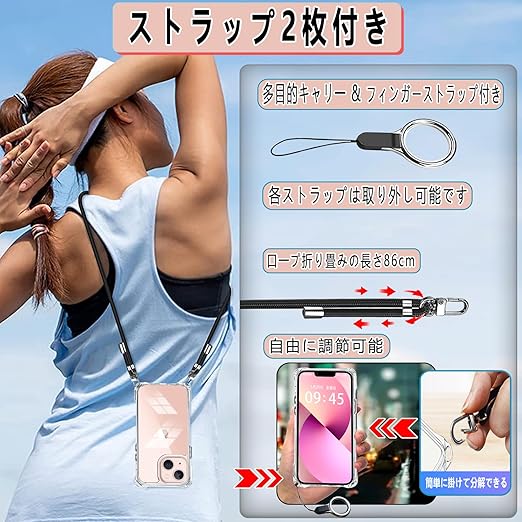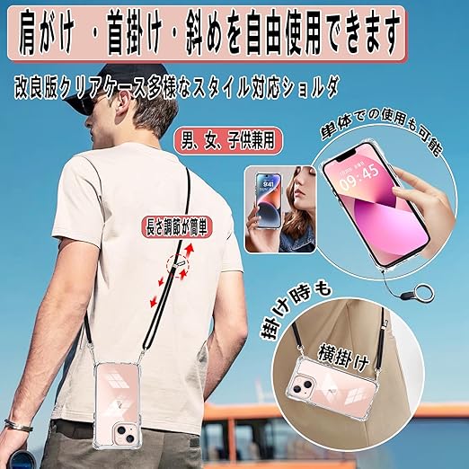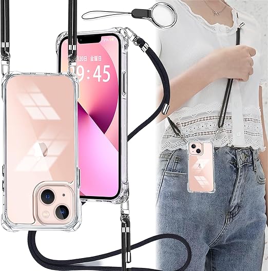 OJBSEN いphone13mini ケース iphone13miniケース アイフォン 13ミニカバー【ストラップ2枚付き】調節可能な ショルダー 肩がけ 首掛け 紐付き 斜めがけ ストラップホール付き 薄型 透明 軽量 シリコン TPU バンパー [耐衝撃 全面保護 米軍MIL規格 防指紋] MagSafe ワイヤレス充電対応 スマホ ケース(クリア) a