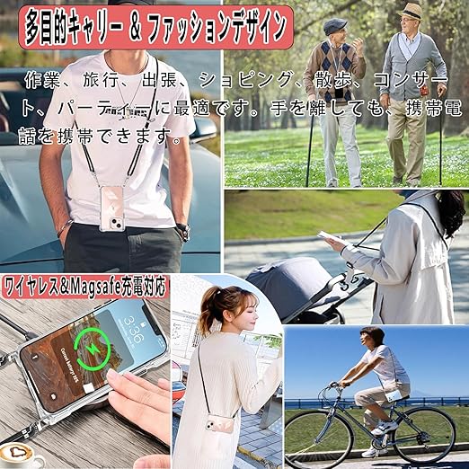 【ストラップ2枚付き & 長さ調整可能 & 両手を解き放つ】本iphone 13miniケースにはフィンガーストラップとネックストラップが付属します(フィンガーストラップ長さ:10cm、ネックストラップ装着時の最大調整長:86cm。)電話ケースの特別な四隅のデザインにより、電話を縦または横に肩に掛けることができ、ストラップはいつでも調整および取り外しできます。このアクセサリーはファッションだけでなく、通常のストラップよりも快適で実用的です。 作業、旅行、出張、ショピング、散歩、コンサート、パーテ